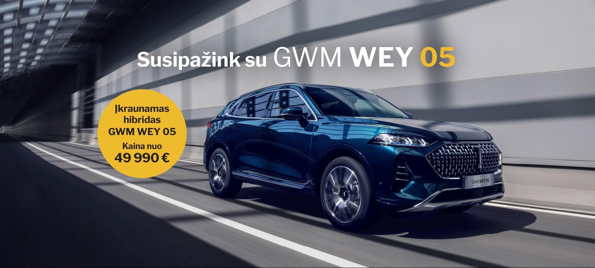GWM ORA 03 – vienas populiariausių ir prieinamiausių elektromobilių Baltijos regione. Kiti GWM modeliai – prabangūs įkraunami hibridiniai automobiliai WEY 03 ir WEY 05. Šie aukščiausios klasės visureigiai aprūpinti pažangiausiomis technologijomis, tarp visų įkraunamų hibridų išsiskiria įspūdingu vien elektra nuvažiuojamą atstumu. GWM WEY įkraunami hibridai – išmanus pasirinkimas tiems, kurie nori žengti į ateitį stilingai ir kartu rūpintis aplinka.
